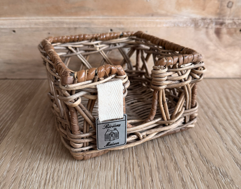 Stijlvolle rattan houder van Rivièra Maison, perfect voor notitieblaadjes op bureau, keuken of werkplek.