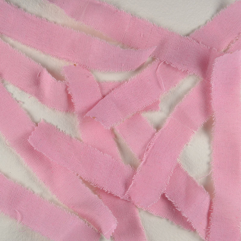 Set met 11 losse stoffen lintstukjes in een zachte roze tint. De stukjes hebben een rafelige rand en zijn leuk voor het afwerken van cadeautjes, labels, kaarten, scrapbooking en andere creatieve projecten. Mooi als decoratief detail bij een klein presentje of knutselidee.