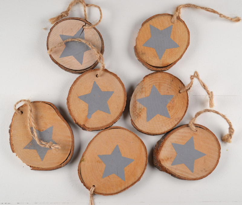 Houten schijfjes met ster - set van 6