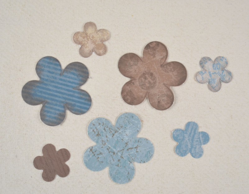 Losse papieren bloemen in vintage stijl, nog zelf op te bouwen tot een bloem met subtiel 3D-effect. Leuk voor scrapbooking, kaarten maken en andere creatieve projecten.